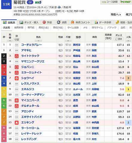 京都~菊花賞予想です。ダービー3着の◎ショウヘイから。サートゥルナーリアで距離不安だが母父オルフェで払拭できると思う。王道ローテでも大崩れなくここで大輪咲かせても。相手は唯一GI連対している〇ジョバンニを。ホープフルS2着と皐月賞4着で中山向きかもしれないがここでは実績上位。自在性もあり流れに乗れれば。あとは神戸新聞杯快勝の▲エリキングと5年連続で4番人気が馬券に絡んでいる☆マイユニバースの逃げ一発を警戒したい。◎ 7 ショウヘイ〇 5 ジョバンニ▲ 15 エリキング☆ 11 マイユニバースヒモ△は3 ライトトラック6 ミラージュナイト12 ゲルチュタール買い目3連複 1頭軸7(3.5.6.11.12.15)51~1204倍3連複 2頭軸(5.15)3.6.11.12(5.11)3.6.12(11.15)3.6.1281~864倍ぽちっとよろしくねにほんブログ村競馬ランキング