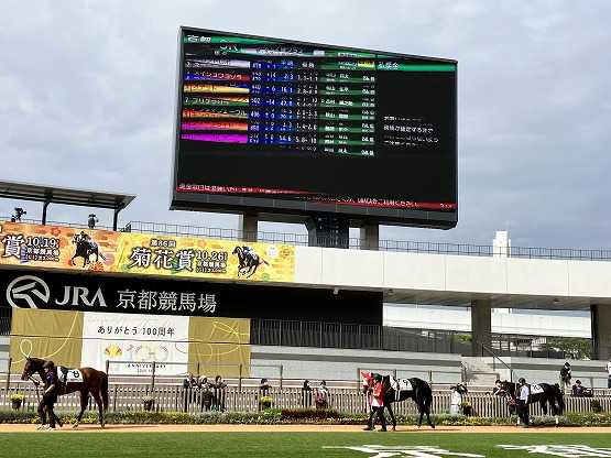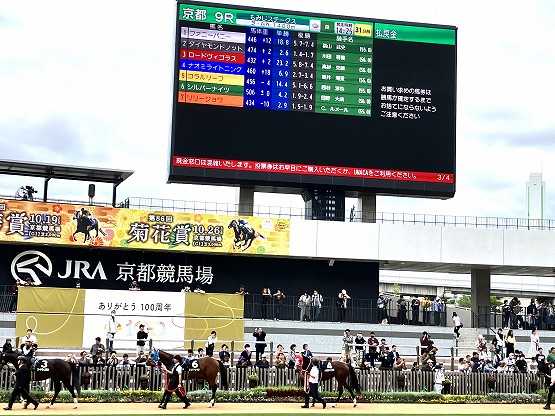 11/1(土)DMM出資馬ナオミライトニングの3戦目です。ビッグアーサー×ナオミエキスプレス2023.4.2生 2歳牝関西 矢作厩舎 ヒダカファーム募集額2800万2000口 1口14000円(CB20% 2800円)京都11R GIII ファンタジーS芝1400m(牝) 北村友騎手55kgがんばれ!馬券107.5倍 12番人気馬体重は増減なしの460kgでした。※画像はXフォロワーくれないのbさんより許可済みで掲載しています。ありがとうございます!TVでは映ってませんでしたが、本所発揮してたんやね。(キンちゃん思い出す)牝馬限定戦なのでべべ人気も先行してうまく嵌れば3着~掲示板あるかもですが、私にとってアレですので応援は行きませんでした。出走です。普通のスタートから中団より後方から。前回よりは11秒台が続く淀みないペースで先行できなかったかな?パンと出れば最初だけ12.5秒でしたので可能性はここだけだったようです。4コーナーを回りインを狙って追い出され伸びを見せましたがジッとしていた後方の外差し勢の出番となり荒れていたインは伸び負けし勝ち馬から0.6秒差8着でした。結果1着 1.21.5 (3F33.9秒)前走のもみじSより内容は良化しましたが、やはりOP・重賞では現状は決め手不足なんでしょう。メンバー落ちした自己条件なら1200・1400mで対応できそうな感触はありますね。春まではあの路線目指すも良しかなとは思いますが、将来的には1200mでどこまで活躍かなですよね。しばらくゆっくりして英気を養い今後の成長がとても楽しみです。お疲れ様全3戦1勝 750万芝(1-0-0-2)ぽちっとよろしくね0・