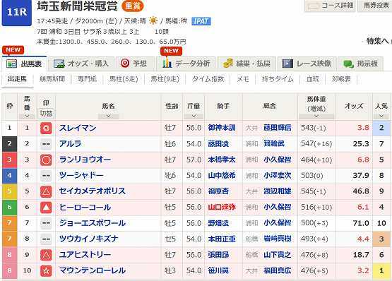 浦和~浦和記念予想です。ここでは実績上位の◎クラウンプライドから。大外どうかもすんなり先行ならメンバーに恵まれ勝ち負けしても。◎ 12 クラウンプライド〇 11 ロードクロンヌ▲ 9 ホウオウルーレット☆ 5 ナイトオブファイア△ 4 スレイマン△ 6 デルマソトガケ買い目3連複 BOX(5.9.11.12)3連複 2頭軸(11.12)4.6ぽちっとよろしくねにほんブログ村