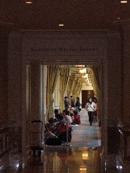 さあ、おなかも一杯になりました。とりあえず、午後一番は、朝にFPを取った「センター・オブ・ジ・アース」で始まりました。「海底2万マイル」は、スタンバイ40分ほど、「シンドバッド・ストーリーブック・ヴォヤッジ」も、なんとか30分待ちくらいで乗ることができました。でも、そのあとは・・アラビアンコーストも、マーメイドラグーンも・・・ ごらんのように、人・人・人FPもほとんどの人気アトラクションは発券終了、スタンバイの行列もどれも120分以上の待ち時間。ダッフィーのお店、「アーント・べグズ・ヴィレッジストア」です。ここも、ごらんの行列。なんと、店に入るのに2時間以上待ちだそうです。今回のディズニーツアー、もう一つの目的があります。それは、ブログ仲間とお会いすること。約束は4時半。一人で会うのは恥ずかしいので、カミさんにもお付き合いをお願いしました。子供たちも誘いましたが、あっさり断られ、お会いしている間、モモはおみやげの物色、こーちゃんは駐車場の車の中で寝ているそうです。ミラコスタのベッラヴィスタラウンジでお茶でもしながら、と思ったんですが、あいにく満席で断られ、どうしようかと思っているところへ、メールが・・・すでに待ってみえるようで、「白いマフラーをバッグに結んだ美人がわたしです・・」周りを見渡すと、まさにそのとおりの「美人」が・・・おそるおそる声をかけると、その方でした。仕方なく、ホテルのすみっこのソファでカミさんも交えて3人でお話をしました。想像通りの明るい、気持のいい方でした。30分ほどいろいろ楽しくお話をして、別れ際、手作りのケーキをいただきました。その方のブログでは、いつも手作りの美味しそうなスイーツが紹介されているんですが、念願かなって、賞味できることになりました。こちらからのおみやげは、ありふれてますが、伊勢名物「赤福餅」を。歩いて帰れる距離なんだそうで、さっそうと帰っていかれました。すでに入室できる時間なので、こーちゃんとモモを呼び寄せ、部屋へ。トスカーナサイドの4階、トリプルルームです。すでに、荷物も運び入れてありました。休む暇もなく、ディナーの時間です。プライオリティーシーティングを頼んでおいた「SSコロンビア・ダイニングルーム」肉が少々油濃かったですが、リッチな雰囲気もあいまって、優雅なひと時でした。2日後はカミさんのバースデイ、そのお祝いも兼ねて・・ この後は、ポートディスカバリーで、アクアトピアとストームライダーを楽しみ、アクアトピアからは、花火を観賞できました。こうして、盛りだくさんのシー第1日目は暮れていきました。こーちゃんが、食べ過ぎたのか、肉の脂が悪かったのか少々おなかをこわして夜中遅くまでトイレにこもったオマケつきでしたが・・・ 明日もいい1日でありますように・・ 続 く