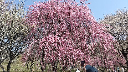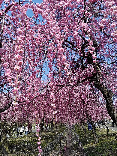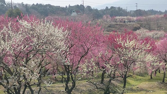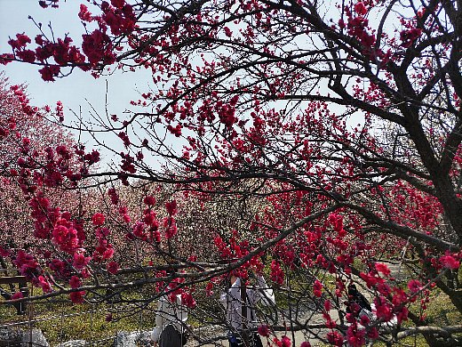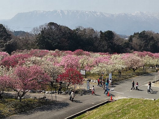 下に降りて、あたたかな春らしい日差しのもと、 100種類4500本が咲き誇る梅林 を散策しました。