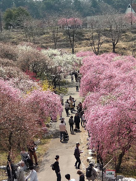 まずは ​高台から梅園の全体を見物。​