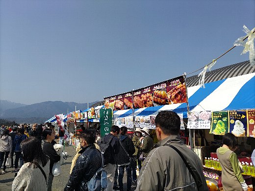 昼前、ほぼ満杯の駐車場を出て、帰りはメイン道路のほうを通ってみましたが、会場へ向かう車の列は2キロ近い渋滞になってました。