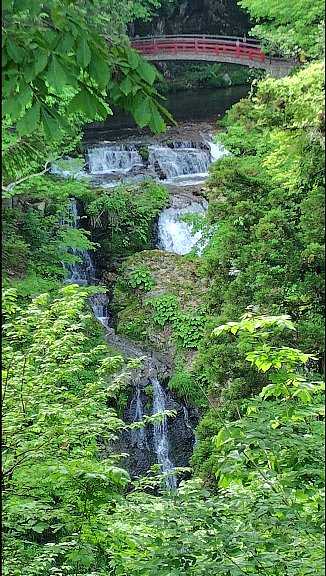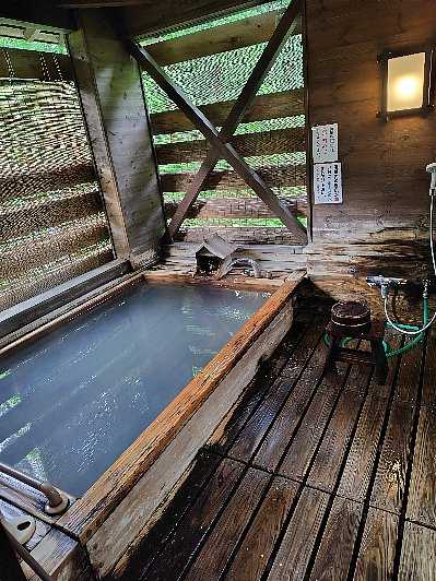 浴槽の窓からは、 白銀の滝の上部のせせらぎ が木々の間から見えました。