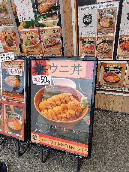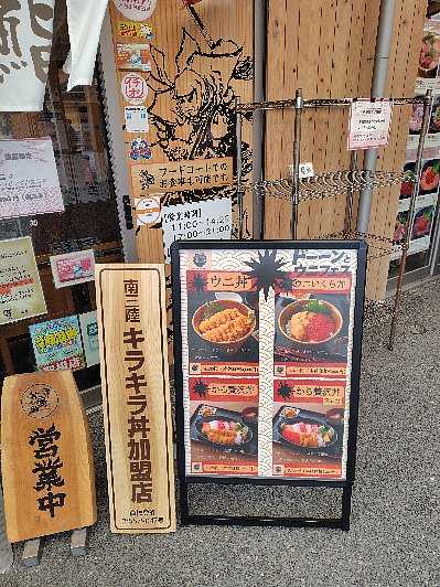 ここの名物は新鮮な三陸産の魚介を使った「キラキラ丼」 というネーミングの丼料理で、ほとんどの飲食店で提供しています。