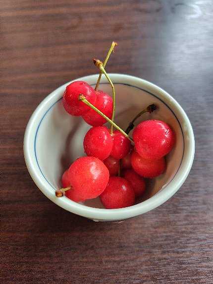 部屋に戻って荷造りをしながら、昨日、山形駅で買ったものの食べてなかった サクランボ をいただきました。