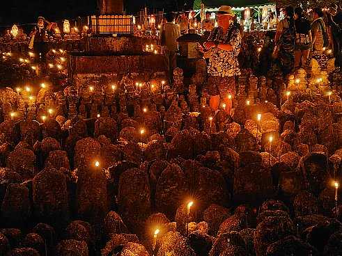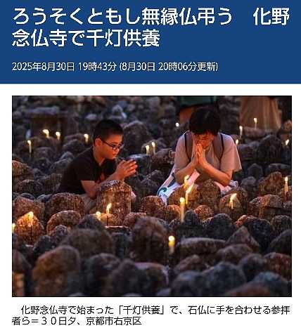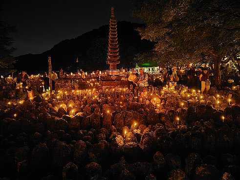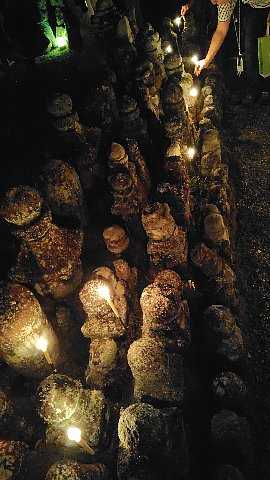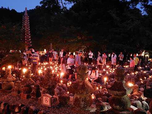かつてこのあたりで葬られ長い年月風雨にさらされ散乱した無縁仏の石仏や石塔約8000体を、明治時代に地元の住民や僧侶が「西院の河原」と呼ばれる念仏寺の境内に集めて、一体一体ろうそくを灯して弔ったそうです。