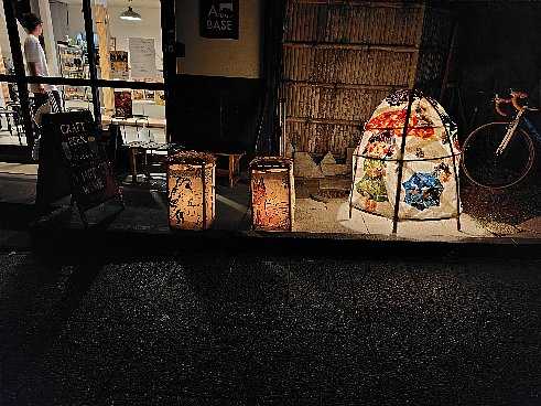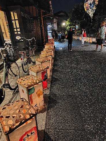 この参道は 「旧愛宕街道」 と呼ばれ、毎年この時期に、念仏寺への訪問者を迎え入れるため、また地元の地蔵盆を盛り上げるため、 手作りの小さな行灯を道沿いに灯します。