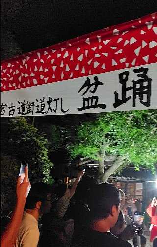 参道では、にぎやかな笛や太鼓の音が聞こえてきたので行ってみると、 盆踊り でした。