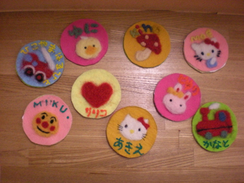 今日は、羊毛をニードル針でフェルト生地に刺して作るネームプレートをご紹介しました。13組のママ達が参加してくださいました。みんな同じ物を作るのではなく、ママに我が子の好きな図案を考えてもらいました。アンパンマンだったり、キティちゃん、車や消防車、きのこなど、とってもかわいい作品に仕上がりました。ほんとに色のついた羊毛を、ニードル針でチクチクチクと刺すだけで出来ちゃうんです。上手とか下手とか関係ないんです。ママがつくった世界に一つだけのオリジナル!! 普段、手芸をする時間なんてないですよね。でも30分くらいで仕上がるので、「ストレス発散になった。」「達成感があった。」なんて声も聞こえていましたよ。