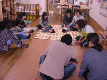 いつも思うのですが、ママ達は毎日赤ちゃんや幼児を抱っこしたり、おんぶしたり、ホントに大変です。腰や肩にも負担があるのは当然だけど、ゆっくりマッサージに行ったり、ケアしたりする時間もないのが現実です。そこで、自分でできる簡単なマッサージを鍼灸師さんに教わりました。とくにこの寒い季節は、体もこわばり、冷えに悩んでいる人も多いですよね。まずは「冷え足チェック!」足に細かい血管のようなものができている人は、足が冷えている証拠だとか・・・。まずは足の指をほぐすことからです。これなら少しの時間で簡単にできそう!そして、足の裏は、体の色んな機関のツボが集まっていて、そこを指で押すだけでも違います。他も首をゆっくり回したり、ちょっとしたことだけど、自分で簡単なケアをすることで、冷えやコリの改善につながることがよくわかりました。みなさんも隙間の時間で、自分の体をいたわりましょう!!