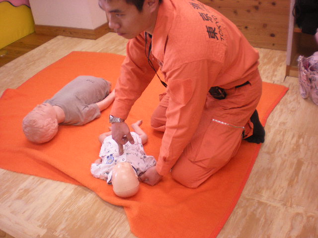東村山消防署の消防士さんに、赤ちゃんと幼児の救命救急法を教えていただきました。最初は心臓マッサージをおそわりました。1歳までの赤ちゃんは指で、1歳以上6歳くらいまでは片手でやりました。 お風呂や水遊びなど、ちょっと目を離したすきに起こりやすい事故ですよね。参加してくださったママ達からは「思ってたよりも力がいることがわかった。」「1分間に100回は疲れたが、救急車が来るまで続けるんですよね。」 などなど、体験してわかる感想もたくさんいただきました。 15組も集まっていただき、消防署の方も熱いママ達の視線に、また次回もやりましょうと約束していただきました。