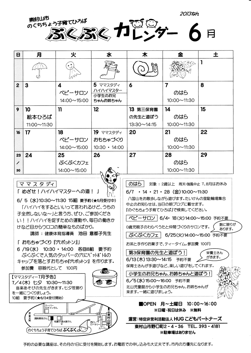 今日は、とても暑かったですね。こんな日は、夏のお楽しみのあれが出るに違いない!!!!と思っていたらやっぱり。1匹捕まえて(スタッフです。オオスズメバチがいましたので。)近くで見ました。ちょっと触ってみる子もいましたが、虫かごにいれて蓋をしてほしいというゼスチャーの子もいました。子どもにとっては、とっても、大きく感じるのかな。もっと大胆に足でもつかんで振り回しているところを想像していた私にとっては、ちょっと残念でしたが、木にとまっているところを見てもらえてうれしかったです。オオスズメバチもいて、危険な生き物を知ってもらえました。朝シャンはNGですよ。(匂いに寄ってきちゃうそうです。)林の中は、植物も夏仕様になっていました。子どもたちは、かたつむりが好きです。ダンゴ虫やアリも。(そうか、やっぱり、カブトムシは大きいんだ!)じーっと見ていました。1か月くらい前に、いい香りを放っていたエゴの木の花が実になっていて、「こんなにたくさん!!!」とびっくりしました。枝をゆすって、木の実が近づくと、目がきらきらしていました。子どもの目にはどんなふうに移っているのかな?男の子が、たくさんしゅうかくして、「ぷくぷくに飾ってね。」と渡してくれました。ありがとう!うれしかったよ。それからこんな植物が!!!!どなたか名前ご存知ですか?名前は、秋までの宿題です。蝶を自分で網で捕まえられたり、蝶が手のひらにのって、とんでいって、それを見てケラケラ笑ったり、下りの道を走って行って、転んだり…。みんなの笑い声、泣き声がたくさんの「のはら」でした。また、9月の第一金曜日に会いましょうね。暑い日、雨かな?という日もお子さんを「のはら」に連れてきてくださったママたちお疲れ様でした。