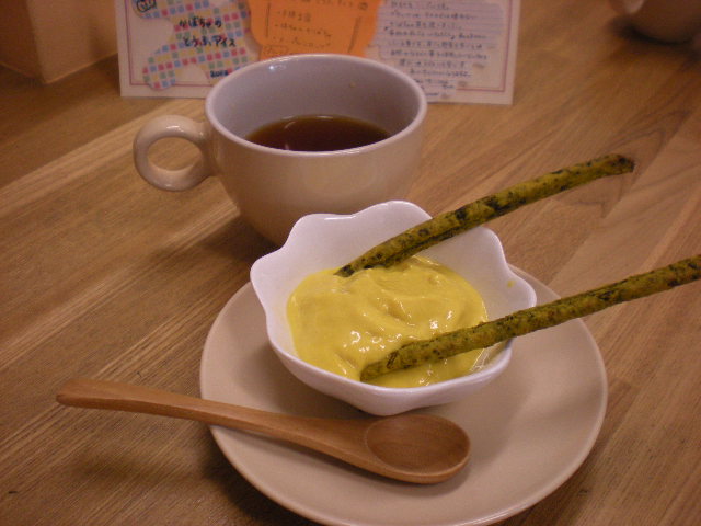 まだまだ、暑い日が続きますね。8月のカフェは、かぼちゃの豆腐アイスとカボチャの皮をつかったプリッツでした。おいしかったー。(*^。^*)
