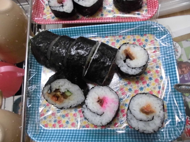 今日は“海苔巻き作り”を体験しました。巻きすの上に、海苔と酢飯、具を順番にのせて巻いてみると、太巻きのできあがり!!準備しておけば、あっと言う間にできるので、ママ達もビックリしていました。 お弁当にカッパ巻きや納豆巻きなど、いろいろ使えそうとの声もありました。もうすぐ節分、恵方巻きにチャレンジしてもらえたら嬉しいです。