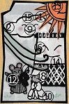 A.同じもの探し…5番と7番(1.太陽光線と雲の前後関係 2.外枠側の雲の長さ 3.なまこ壁の継ぎ目の欠けの有無 4.扇子の有無 6.風の線の巻の有無 8.角隠しの柄の有無 9.雲の口 10.花嫁衣裳の裾の長さ 11.屋根の有無 12.家紋の大きさ 13.太陽の眼 14.白壁の高さ 15.雲上部の窪みの有無)