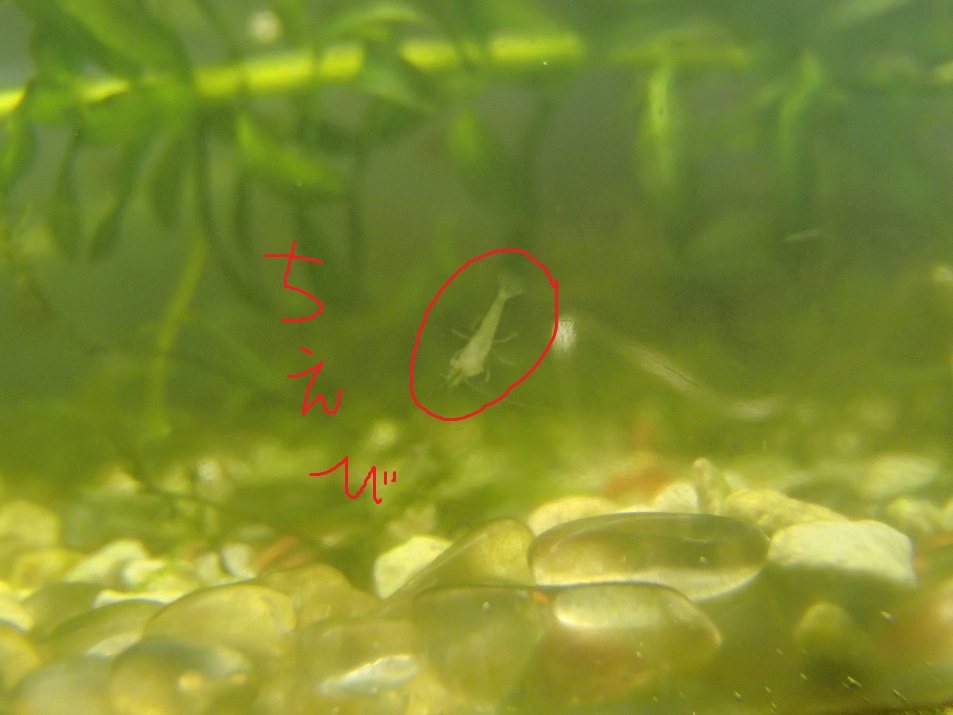 稚エビが生まれた二日後に愛車ハスラーがやってきたことで話題の主役の座を奪われているミナミヌマエビさんたちです。という訳で今日は26日に第一陣が誕生した稚エビたちについて我が家のミナミたちは和金のタッチャンとスジシマのドンちゃんとジョーくんと同居しております。(ミナミとタッチャン、、、いま気付きました。偶然です。マジです。)和金はミナミを食べるそうですが、うちはまだ金魚が小さいからか昔からの同居人だからか食べる気配はありません!しかし流石に誕生したばかりの稚エビは食べるだろうということで三匹だけ抱卵エビを隔離ボックスにて飼育してました。他にも五、六匹抱卵個体がいるんですが、爆殖しても手に負えないので本水槽でタッチャンと同居してもらってます。隔離しているのは比較的先に抱卵した三匹で、そのうち二匹の卵が孵ったようです!自作隔離ボックスは掃除し辛いのでコケで汚れてるんですがなんとか小さなエビが確認できます!産み終えた母エビは一足先に本水槽にお帰り願い、隔離ボックスには抱卵個体が一匹と稚エビがお住まいです。26日に誕生した稚エビは確かに少しずつ大きくなってる気がします写真はわかり辛いですかねえ。ケータイでは撮れないのでコンデジのマクロで撮ってます!もう少し大きくなったら本水槽に引っ越してもらおうと思うんですがモスやアナカリの森、流木の影なんかに到達する前にタッチャンが美味しく頂きそう消灯後にこっそり入れるようにしないと!稚エビで味を覚えたタッチャンがミナミを餌と認識しちゃったら惨劇が繰り広げられるかもタッチャンが大きくなるにつれていつかその日がやってくるのかな、、、金魚の食欲vsミナミの爆殖。金魚が勝ちますよね、、、いざとなったら30キューブあたりでエビ水槽立ち上げかなあ。出来ることなら世代を重ねて我が家のメイン水槽でツマツマしてほしいなと思っている今日この頃でした!そうそう、ガラス面の掃除屋としてフネアマガイさんをお迎えしたいなと思ってます。お迎えした時の名前は貝の「カ」の字を取って「カッチャン」とする事が本日確定しました!素晴らしい掃除の成果を見せるも不意な事故でお亡くなりに、、、なんてことにならないようにお願いします!フネアマ貝(2匹)ではまた!
