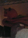 もーいーくつ、ねーるーとー、おしょーおーがーつーぅ一年は本当あっという間‥。時間とは長いようで不思議な物です不思議と言えば、ナッツに不思議な事が起こりました今日の夜久々に出掛けた私、帰宅中メールが 母&妹 『ナッツがいない。』‥目を疑う私しばらく意味が解らず、わかった瞬間即効電話あーあんな汚い部屋で、変な物を食べてしまったら‥雨で表に出ていたら‥どっかで凍えてるんじゃ‥すると、今居場所を発見したケド捕まえられないとの事写メを見ると こんな暗いとこ‥棚の私の洋服の上に チョコン。。。あいにく妹も母も、私がナッツに噛まれて血だらけになった姿を見ているので上手くナッツを捕まえられず、困惑している模様(↓写真は想像↓)しばらくして我が家に戻されましたとさここで不思議な事に気がついたんですそうナッツは一体ドコから逃げて行ったのか?話によると1時間半前にはゲージでキャピキャピしている姿を目撃されたそうなその後母が寝ようと、ナッツに『おやすみー』と言いに向かうが、無反応きっと、ポカポカのベットの中に寝ているんだろうと覗くすると二つのまん丸の目が見えたのだと。こんな感じで(写真は想像)だけど、いつまでも動かないから、老眼の目をよーく凝らすと‥それはナッツのウンチが仲良く2つ並んでいただけだった‥5分は気がつかなかった母。よく踏み潰されなかった‥。。。。わははははー‥‥で、?ナッツは?と、なり大騒ぎ‥なんと、その時、ゲージの屋根の扉は閉まっていたんだそうな‥我が家の屋根は、利用している人も多いであろう、こちらのタイプ屋根がしまってたら、脱出経路は金網しか残されていない 『ナッツちゃん、ここから出たの?』 『‥エヘヘおちえてあげない』 イリュージョンです金網すり抜け?実はメタボ気味とか、思わせといて中はすっごく細くて夜な夜な金網をすり抜けちゃ夜の街に出てるとか? いや‥‥この体型に限って‥それは、ナイ(顔潰れた?) きっと、毎晩、こんなことやこんなことやそんなことで挟まってみたりそんなとこで日々筋トレをしたり。きっとこれも、世紀の大脱走をするため、日々いろんなトレーニングをしてるんだろう‥。でも、危ないから許しませんよー。見えてる所でこんななら、見えない所で何をしているのかな~ 『ハッ バレたったのね週刊誌フラッシュの撮影はお断りッチュよ アナタタチ 事務所を通してくだしゃい』 パシャッ パシャッ『あなたなんですね第3の引田テンコウは』パシャ 『ピー やめてくだちゃいーおしゃないでー』悪い子だから、車掃除しちゃうー『くッ、くるまをはずすなんて鬼でちゅ~』『なによー特大の人参食べきってやんのよーメタボなんて何よ』結局、ナッツがどう逃げたのかは、謎‥今別の部屋にいるので、今にも金網をすり抜けているのではないかとハラハラこれで、また、私はナッツに付きっ切りになってしまいそう はやく脱走経路を特定しようみなさんも、気をつけて‥ ↑人間にはわからないイリュージョンをかますナッツに1票をお願い致します<(`^´)>↑P.S 楽天ブログの方、どうやって動画をUPさせるのか、教えてください‥泣1週間頑張っても上手く出来ませんでしたサイズは小さくしているしファイルの種類もOKなんですが、なぜかUPに失敗します。また、日記に載せ方が、メールで送信?も失敗に終わり、1からわからなくなってしまいました。 すみませんが‥どなたか、、、教えてくださいお願いします
