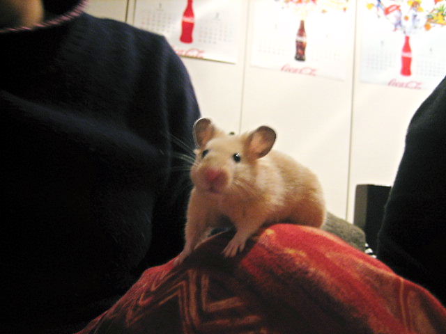 一日、空いてしまいましたが、2日徹夜ののちそのままフラフラしながら、一人でカップルうろつく お台場のペットショップへ見に行きました 出会いは、長くなるので、後に書かせてもらいますが(物凄く大変でした‥)、可愛くて可愛くてしょうがない子供が産まれたお母さんの気持ちがなんとなくわかります。では、紹介笑ってるのかな? はじめまちて “ナッツ” でつ 女の子でち! 『何よ!デブでチュッてぇ?!まだ、アタチはピチピチの2ヶ月デチょ』 ジローッ‥『何よ、食べちゃ悪いぃ~???』今時の現代にふさわしい、若者ギャルハムだわ~。強気ね、この子!こんな怖い顔いやぁ‥もう一回脱走したもんね♪ どうやら態度も去ることながら、食欲も今時の、ギャル曽根ならぬ、ギャルハムらしい。。。どっちにしてもギャルなのねがおー!!!!!それにしても、赤ちゃんなのに本当、キンクマハムスターは大きいね。 一日一緒に過ごしてナッツのいろんな事を知れたよ。まだまだ話題はあるけれど、今日は自己紹介でした みさなん、今日からヨロチクねぇ まさか、こんなに初日からカメラ目線をしてくれるとわ^-^ 早速ですが↓はじめました。日本中のハムスターのブログから皆の日常のブログまで、いーっぱいのってます。是非、おこしください。