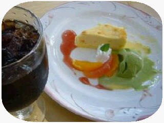 美味しいデザートを頂きました。「オレンジ風味のチーズケーキ」と「抹茶アイス」です。