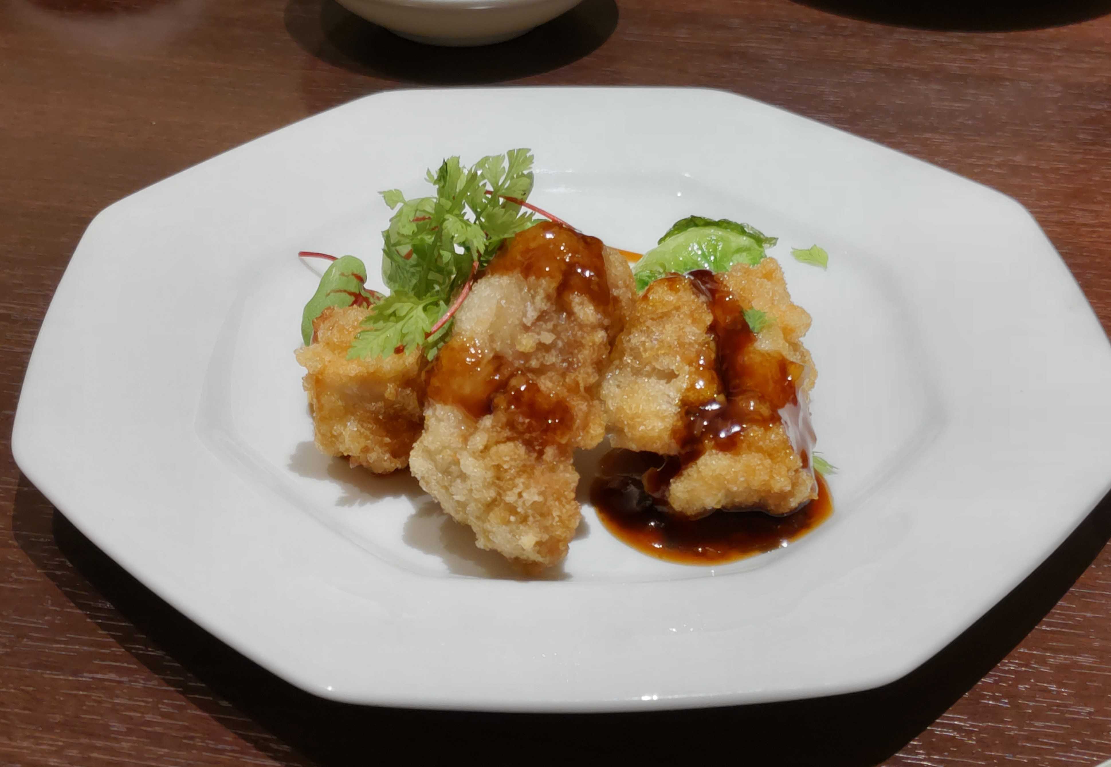 もう1つの肉料理は 鶏肉のさくさく揚げ 香味ソース