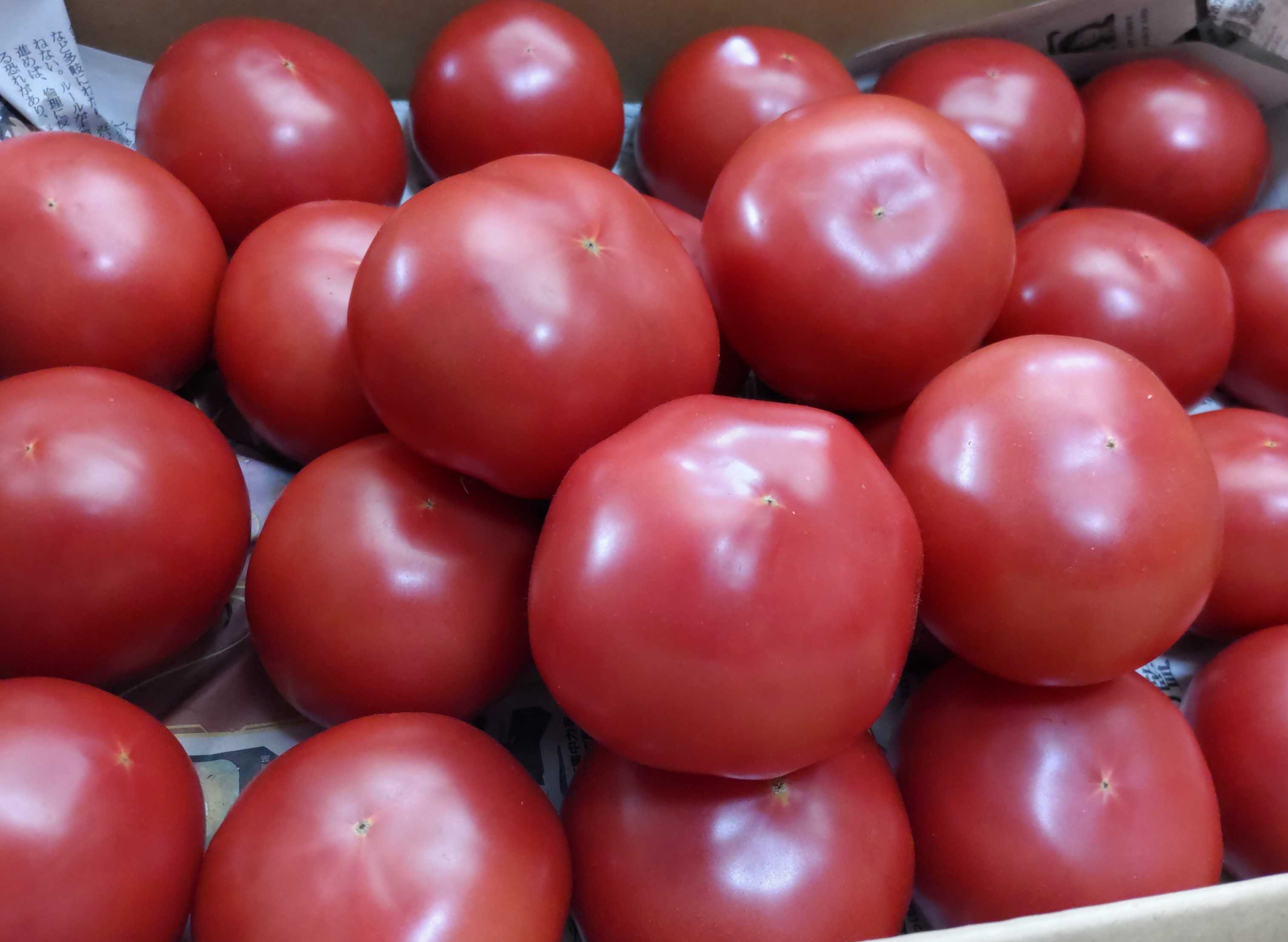 「トマトソースを作る用のトマトがたくさんあるから取りに来て」と箱の中にぎっしり詰まった5kgのトマトを無料でもらってきました。