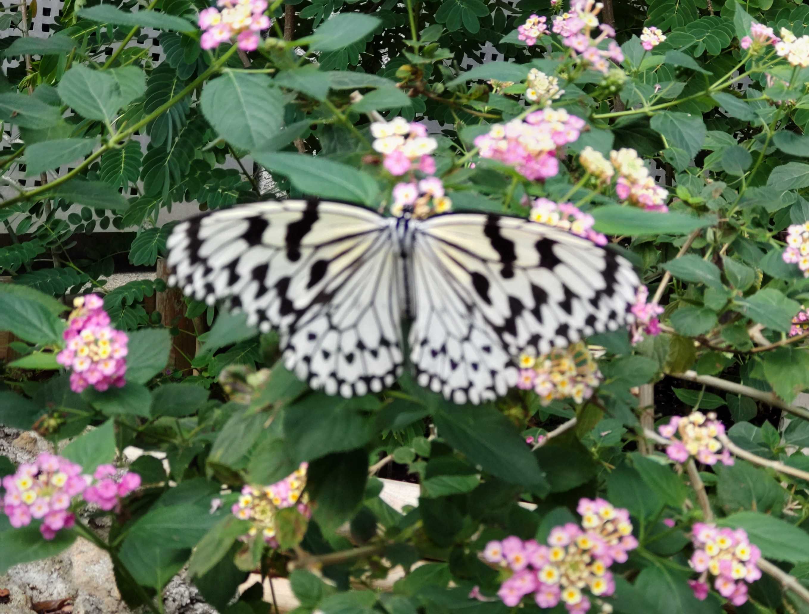 昆虫館の中は色とりどりの蝶が舞う中を散策できます。アゲハ蝶がとても大きくて立派でした。