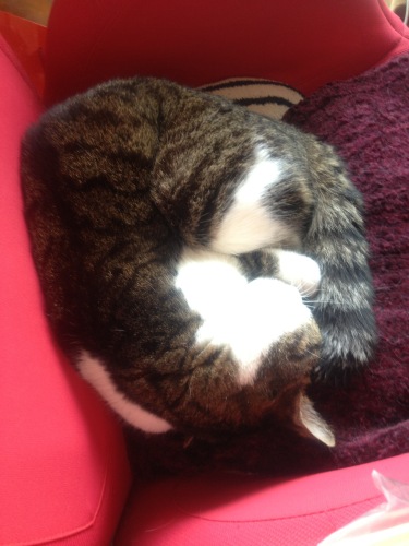 のんのんママですこんばんは今日からは 寒くなるとか聞いていたのに相変わらず あっちっち~汗かきまくっています。なので 夕飯が何を思ったか 冷やし中華(笑)今頃食べる物じゃないんですがね暑くてつい 口当たりのいいものに逃げてしまいました。さて 今日ものんのん女王様ご機嫌で寝てらっしゃいます。近頃は こちらの椅子がお気に入りあまりにも くるんと丸まって 何がなんやら 分からないでしょお手手も 尻尾も みーんな 巻き巻き 尻尾で お顔を 隠しているのか くすぐっているのか 見ちゃダメってことでしょうね(笑)