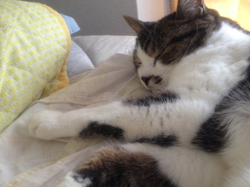 のんのんママですこんはんは。雨が降っていますねぇまあ 乾燥していたので恵みの雨でしょうか。今朝 たまたま手元にアイフォンがあったので目の前で寝ていたのんのん女王さまが余りにも気持ちよさそうだったのでパチリ♪ふっくりふくふく きもちよさそうぽってり お手手も かわいいよ幸せな寝顔ですね。