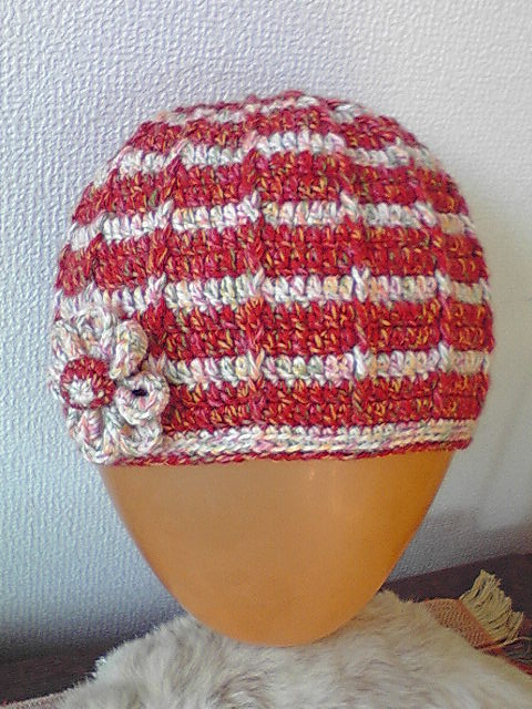 娘が髪を切って短くなったので、帽子を編みました。長編みと引き抜き編みです。本に載っていたポットカバーを参考に目を子供の頭に合わせて目を増しました。耳まで隠れて暖かです。「お花つけたーい♪」というリクエストに答えて、花のモチーフつきです。このごろ要求が多くて参ります。上から見ると的みたいでつい突付いてしまい、娘に怒られました使ったのは毛糸ZAKKAストアーズさんのサニーという糸です。すごくかわいい糸で一目ぼれでした。まだまだあるので今度は何作ろう?ふわふわあったかなので、これをかぶって遊ぶと額が汗ばむほどです。
