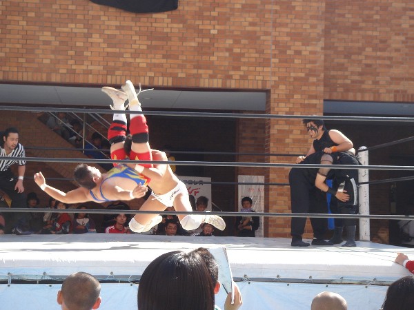 次の瞬間にはイスめがけての高野落としでさいとうを奈落へ。