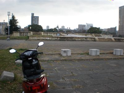 「貴志長吉神社」を訪問した後、帰路につきました。もと来た道を戻り西宮戎を目指そうとGPSをセットしましたが、なんとなく左折の指示がないなとGPSを見ると、なんと画面が消えてるじゃないか。外部バッテリーが切れちゃったみたいです。出かけるとき残量を見て、最後まで持たないかなと思ってたのが現実になってしまいました。Uターンして間違ったと思われる道まで帰ればいいのですが、せっかく小回りの利くスクーターで来たのだからと、西北に進んで大阪市内に突っ込もうと思いました。面白いところに出くわすかな?と寄り道好きの性です。「布施」の駅前通りにはテキヤさんが軒を並べています。お祭りがあると何処からともなく集まってくるテキヤさんが日銭を稼いでいるところですね。商店街前の広い歩道にテキヤさんが長く続き、この辺を仕切るテキ屋の親分が上手に警察と付き合ってる風が見えます。「高井田」ってよく聞くところやけど何処や?と言うところまでやってきて、東西に走る阪神高速の下を西に進路を取りました。「深江橋」「緑橋」「森ノ宮」を過ぎると、左手に大きな空き地です。遺跡跡風の造作になっていたので停車します。「難波宮跡」でした。大阪市内に不案内な僕では、ここが大阪市街地のどのあたりになるのか分かりませんが、いいところに出てきました。後で地図を見ると大坂城外堀横でした。「大坂城に寄ってみたらよかった」難波宮は「大化の改新」の舞台ではなかったかな?飛鳥奈良時代に天皇の交代のたびに大阪と奈良で遷都を繰り返すややこしい時代の遺物です。大阪城の横なら、大和川と淀川の水運にも恵まれ、海にも近く、奈良よりずっと便利な立地ですね。GPSに表示される時計がなくなったので、あとどれくらい寄り道の時間があるのかわかりません。日が落ちると危険度が増すので、もう少し地理に明るいところまで帰ろうと、家に向かうことにしました。そのまま道なりに西に進み弁天町からR43に乗りました。大阪市内をウロウロしたので西宮戎はお預けにして、R43でr13を目指しました。尼崎に入り1本手前の道を曲がってしまい・・・「おっとよさげな神社発見」寄り道しましょう。「大物神社」・・・誰も人はいません。普通の神社はこんなものです。謂れを読むと、「頼朝の反感を買った義経と弁慶が西に逃れる為に船に乗ろうと大物浦に来たが、風が強く一時身を寄せたのがこの大物宮。静御前と別れを惜しんだ」そうだ。r13を北上して阪急神戸線が見えてきたので、先月偶然見つけた「塚口城」を探索することにしました。もう僕の守備範囲まで戻ってきてるので安心です。横道にそれウロウロ、前回の記憶ですぐに発見、小さな小さな祠がそこだけ高くなったところに建っています。城跡の土塁がここだけ残ったのでしょう。周りは市街化されているので、どんどん削られてこんなに小さくなったのかな。行政の「謂れ」が立っていたので、このまま残りそうです。土塁の上に祠の前に立つと、向こう側がストンと切り立っています。そこには用水路が・・・ひょっとして堀の跡では・・・道路に下りウロウロすると看板がありました。やはり堀跡だそうです。助走をつけてば飛び越えられそうに幅のない堀になってしまっていますが、紛れもなく当時から続いているもののようです。看板に「道標」と書いてあったので探すと細い道の横に石があり、「右昆陽、左?」と書いてありました。この細い道は「旧有馬道」だそうです。旧有馬道は旧西国街道の昆陽寺を経由し有馬に向かっていたようです。旧有馬道を進みます。車が入ってこないような狭い生活道路をゆっくり走ります。塚口城の堀跡をトレースするような道でしたが、しばらくするとr13に合流してしまいました。ここから伊丹までのどこかで、有馬道と多田道に分かれるのでしょう。もう旧道はなくなっているようです。時々今でも使われている旧道に出くわしますが、細切れになった道を頭の中で組み合わせると楽しいです。夕闇が迫った4時半になって遅い昼食を食べることにしました。寄り道は楽しい。面白い半日でした。