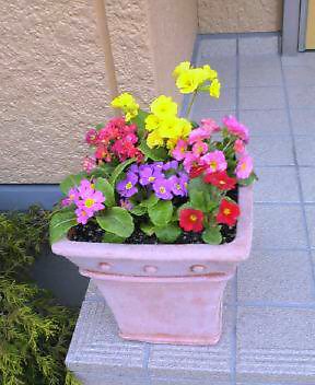 昨日はあまりによいでしたので、旦那様がお花を見にアチコチ連れて行ってくれました。でスクエアの鉢(プランター)が安かったのでおねだりしちゃいました。これにはプリムラばかりを植えました。だって苗1つ69円だったの~もう一つにはイエローピクシーっていうケシ科の花とデイジーを植え込みました。イエローピクシーは雨や夜になると花びらがばらのつぼみのように閉じてしまい、朝になるとまた花びらが開きます。春風にゆらゆらと揺れてかわいいんです。あとプランターラックを買って(もちろん旦那様に^^)並べました。ラックの組み立てももちろん旦那様です。ラックをかった理由は 1、自宅裏への犬の侵入を防ぐ。 2、木のプランターに砂がつくのを防ぐ。(雨で砂がはねるので) 3、朝から夕方にかけてここが一番日当たりがいいので、有効な日当たり確保のため。あとハーブちゃん少しですが葉っぱが増えたように思います。もう少しでアイスの飾りにも使えそう。赤い花が楽しみです。アリッサムと移植したパンジー。アリッサムが増えていい香りが漂ってます。あとベルフラワーという薄紫の がかわいい。子供部屋の掃除よりお庭いじりが心地いいので、やめられな~い。