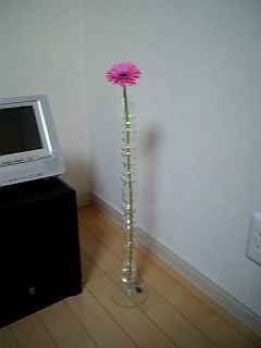 友人のKちゃんからされたガラスの花瓶となが~いガーベラとバラの花を頂きました。お花があるっていいですよね。