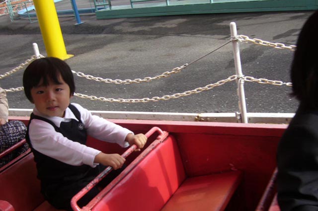 ケイタロウ昨日誕生日でした。ケイタロウも誕生日ということでウキウキの気分さらに七五三!!当初から予定していた。家紋の入った袴を着る事を拒み続け、結局念のために用意していた洋服を着ることに・・・福岡県太宰府市の大宰府天満宮で七五三のお祓いをしました。願うことはやはり[健康]馬鹿でもいい、どんな失敗してもいい健康でいてくれそんな願いをこめました。お祓いが終わって、僕の両親、妻の両親と近所にある「梅の花」というお食事が出来るお店に行きました。両家そろってまだ微妙な雰囲気の時にケイタロウが言った一言ケイタロウ「みんな~~~~~~~~」ケイタロウ「プレゼント・・・・」ケイタロウ「持って来た~~~~~~??」ケイタロウの無邪気な質問とキラキラした希望に満ちた笑顔にみんな「爆笑と癒しの術」にはまり次から次にプレゼントが渡される。なんて恐ろしい術なんだ。みんなミツグクン(さん)になっている・・・・・・。運ばれてきた料理そっちのけ・・・プレゼント空け遊ぶ食事が終わって大宰府遊園地に行く。写真は汽車ぽっぽの写真楽しい日でした。土曜日だったけどなんとか休みとれて良かった!!