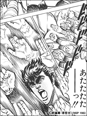最近ケイタロウが悪ふざけをするとケイタロウにある必笑技を使う。それは北斗百烈拳!あたたたたたたたた~って攻撃するとケイタロウはうきゃきゃきゃきゃ~って笑ってくれる。もう一つ覚えた技はロボットのまねをした攻撃ウウィーーーーンガシャンウウィーーーーンガシャン「フォーーーーーーハーーーーー」←ダースベーダーの真似それも凄く喜ぶ。時にやりすぎると怖がってしまうけれども。。。。仕事の時と家庭の緊張感のギャップを感じることがある。今日あるお客さんのプレゼンの為の最終の社内協議があっている時だ、このご時世何の仕事も外せない!しかも時間がない!もう少しこうしよう、ああしよう、でもこの場合は・・・・なんて話をしていて、少し暗礁ににのりかけ、少しみんなが黙って考えるシーンが出来た。ブルブルブル携帯が鳴る。(妻からだ・・・・)(緊急か?)僕「すいません。。。ちょっと失礼します。」僕「もしもし?」僕(席を立とうとして、ちょっと待ってね!って言おうとした時)妻「ケイタロウがね、百烈拳をしてって!」ケイタロウ「アンパーーーーーン」・・・・・・・・・・・・・・・そのでかい声・・・・みんなに筒抜け・・・・・・・・なんだよその電話は!ってみんなが睨んでいる気さえした。。。。それとともに、、、恥ずかしくて息が上がってしまった。。。。僕「フォーーーーーーハーーーーー」ケイタロウ・・・・今日・・・・八つ当たりで百烈拳だ!