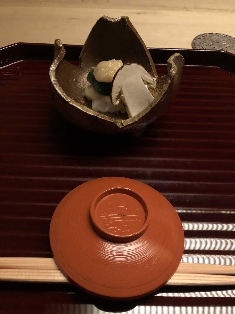 割山椒を模して。でも、大きさから言ったらザクロ?この時期ですから紅葉だよね。でも、これだけで終わらない。裏に桜が‼️誰がこんな事考えたの?桜はお祝い事に使われるそうです。蓋に白菊。魯山人作。はじめて見ました。 赤菊こんな美味しいサワラの焼いたん、生まれてはじめて頂きました。そして、超絶技巧の包丁目❗️こんな酒の肴が家で出てきたら、もう外食しなくてイイな。和食器、好きだなぁ。