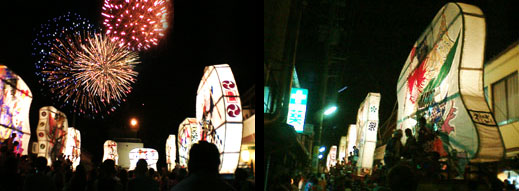 昨夜は能登町鵜川の『にわか祭り』。8月24日25日。武者絵が描かれた『にわか』と呼ばれる行灯風の奉燈が鵜川地区内を巡行する。豊漁を祈願し、七福神の1人弁財天を祀る海瀬神社の祭礼。加賀藩前田家13代藩主前田斉泰が当地を訪問したとき、にわかに奉燈を組み立てて担ぎ旅情を慰めたという言い伝えがある。写真左は去年。右は今年の街中巡行。毎年この季節は毎日のように近隣集落の祭りが続く。子供が小さな時には連れ立って行ったが、さすがに高校生になると行こうと言わなくなった(^^)多くは『座敷祭り』で宴会だから酒が入り結構疲れるので、私も最近は親戚の行かなければならない家にしか出かけなくなったが、この『にわか祭り』は好きな祭りの一つだ(^^;能登を代表する夏の祭りの一つだが、狭い街中を『にわか』の車輪で運行するので、けっこう迫力もあるし時には死に至るような事故も起こってしまうほどの危うさがある。管理運営するほうも大変だし、祭り自体を楽しむ人と、神事で行う部分とイベントとして人を呼ぶ部分の兼ね合いが難しそうだ。しかし、この暑さの中、祭りが続くと疲れるわ~。今夜は絵画教室・・・こっちも最近、賑やかなのだった(^^;