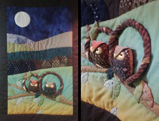 親戚の家の奥さんが作っているキルトを見ていたら、教える人の工夫が見えてきた。知り合いのパッチワークの先生もコサージュをキルトに組み合わせていたが、布のアートも多彩になって立体表現が多くなってきたようだ。レリーフのようなキルトも見た記憶がある(^^色の組み合わせや仕事のキメの細かさは個人の感覚だから生徒の能力次第だが、教室の方向付けや教材の魅力は、指導者の力量が問われてしまう。この世界も競争率が激しなぁ~などと思った。そういえば・・・うちの草木染教室、最近、指導者がサボっている!(--;
