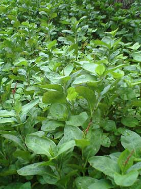 気温が低くなったと思ったら早速藍の花が咲いてきた。写真手前にピンク色の花が3個ほど見える。一番葉を刈り取って『藍の生葉染め』に使っているが、肥料と水を与えるとドンドン育って刈り取った茎が伸び新たな葉が育ってくる。手前の葉は育った2番目の葉。写真の奥の方、深緑色の葉は一度も刈っていないので色が濃い。藍の花が咲いて種を採るのだが、一度刈り取った葉が伸びて咲いた花の種を採る方が来年の発芽は良いと言う。・・・根拠は分からないが。しかし、花が咲いてくると葉が枯れやすいので、今の段階は、花を次々とむしりとっている(^^;写真を撮って花を摘んでいる間に蚊に刺されること!服の上からも刺されるし手首にもあっという間に5,6箇所刺され痒い・・・昨日は屋根裏に上がってかゆかったし今日は蚊だ!うーーーーっ!右手の親指の指紋に刺されたのが、言葉で表現できない異様な痒さ!!!(--;