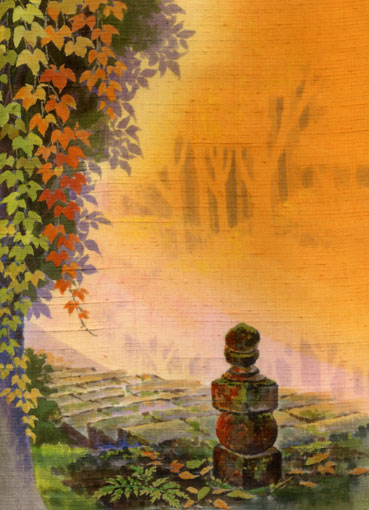 昨夜は、年に一回だけ能登に帰ってくる従兄の歓迎会があった。突然の呼び出しに状況を把握できなかった・・・世話人の方、分かっているのなら事前に連絡しようね(^^所用が多くあれこれと落ち着かないが、最近夕焼けがきれいになってきた。で、思い出したのは夕日の絵。「落日」 絹 染色何年前の作品だったか不明(^^;地域の民話集の裏表紙に使うために染めたもの。染料を使っているから「染め絵」と呼ぶけれど、実際は水彩画のように描いている。技法的には染料に「ふのり」などを混ぜて下からガスコンロで乾燥させて、布の上で思い通りの形に描き止めることを繰り返す。しかし、過去の作品を見てみると、作品の保管の方法が悪いことを痛感する。作るときは懸命なのだが、完成すると忘れるという習性があるのかもしれない(^^;