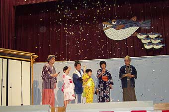 この地区は街中から離れているので、高齢者や小さな子供たちは町の文化祭へ行くことが少ない。そこで18年前からこの地区だけの芸能文化祭を行っている。今夜は、そのプログラム作成会議。主に芸能部門の出演順番を決めるのだが、地区の婦人会や青年団やサークルの出し物は、早く演じて終わった後は気楽な観客として楽しみたいという理由で出演時間の希望は午前中というのが多い。その25~6の演目を午前と午後に振り分けて昼休みを入れて時間調整を行うのだが、例年この係りを行っている担当者は、出演グループの希望を取り込みながらほぼ予定通り終わるように組み込んでいく。昨年の予定時間と実演時間も大きなズレもなく組み込まれていたのだが、今年も1時間半ほど掛けて不確定な要素を織り込みながら組み込んでいった。もちろん、準備もアマチュア、出演もアマチュアだから予定が変更になることも多い。地区に葬式が出たときはプログラムの差し替えで大混乱になってしまったこともある。展示のほうも老人から子供まで何でも自由に出してもらえるような雰囲気で進めてきた。余り堅苦しくない発表会だから地区住民の自発的な行事として18年続けてこれたのだと思うが、芸能のほうも文化部門の展示のほうも役割分担を行い、責任者が会議を数回重ねて、それぞれの役割を担っていく。こうした経験と会議の積み重ねのあることが、この催しを順調に続けている源だと思う。私は展示部門の責任者を続けていたが、運営が強引な進め方をしたら抜けることにしている(^^;)どんなイベントでもそうだが、運営側が各責任者に合意を得られるための会議を行わないと主旨や目的が分からなくなるし、来場者を楽しませるための配慮を行わないと運営側も参加者も後味の悪い思いをする。それを言っても分からない運営会議では、自分自身の責任をもてなくなるからだ。今は、打ち合わせや準備も公民館で出来ているが、18年前は古い体育館で照明の悪い中の展示で、そのための展示パネルを借りるために町の倉庫まで車で片道20分の往復をした。たとえ雨であろうともだ。まだ若かったが、作品展示の準備も進め、夜は出演する芝居の練習を行い、夜中はせりふを覚えるのに必死だった(笑500人ほどの観客の前で行う田舎芝居に10回ほど出演したが、酷いときは2日前に脚本を渡されて台本を見ながら演じたこともあった。脚本が遅かったことの言い訳は客には通じない。このときは内心、泣きそうだった(--;)芝居のことなど分からないし手探りで演じた役で客が泣いてくれたこともあった。お婆ちゃん役で40分間出ずっぱりの芝居で、観客から大笑いされたときのビデオには、当時幼稚園児だった娘が「お父さん、あほや!」という声が残っている(^^ゞ下手でも許してもらえるのがありがたかった(笑写真は5年ほど前のもので、娘と息子も一緒に並んでいる。集落のメンバーが揃わないので、これを最後に芝居には出ていない。18年前、運営側が課題にしたのは中高校生やオヤジの参加が少ないことだった。我が家の子供たちもそうだが、幼稚園児から高校生まで毎年舞台に上げるようにした。その結果、いつの間にか大人になって準備を手伝うようになっていた。いつの間にか中高校生の参加が普通のことになっていた。どう見てもレベルの高い芝居ではなかったし、高尚な文化祭とは言えないが、今夜も担当者全員が会議に集まっていた。もちろん苦情や、やりたくないという住民の声も出る。それでも、運営側は一度もやめようとしなかった。苦情は謝罪し翌年改善すればよかったし、出たくない人に無理強いしないで誰かが補えばよかったことだから。昨日の日記の文化祭の経費だが、このイベントは公民館の予算と地区(町内)会費でまかなわれている。当然のことだが地区費は住民から集めたものだ。参加記念品は、ない。その代わり抽選会がある(^^)が、アイディアと時間と労力の持ち出しだけは凄い。催しが終わると自腹の飲み会もある(笑)そして合意が得られるような会議の積み重ねだ。街中から離れている地区で、暮らしている人が自発的に行う文化祭は、こうして今年も準備が進められていく。あぁ、課題だったもう一つだが。18年の歳月は、当時若かった私らが齢を重ねた結果、そのままオヤジたちの参加が当たり前になっていた(笑