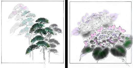 夏物の帯のための図案を描く。季節はずれの額アジサイは、どうも調子が出ない(^^; 着物や帯の仕事は図案を描いてからお客さんにOKをいただいて、そこから生地の上に描くから今の季節のものを描くことの方が少ない。この図案のほかに朝顔などを描いていたが、どうもリズムに乗り切れなった。・・・腰が痛いのも理由だが(--ゞそれよりもパソコンが不調! ぎゃーーーっ!!勝手に落ちるなっ!!!(泣行き詰ったときは、少し時間を置いて手を加えるしかない(^^;