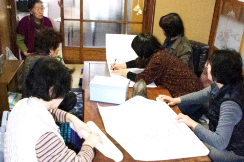 穴水町の『もろはし草木染め教室』、能登の手の桜染め実技編へ!まずは椿灰の作り方から・・・桜の木も、椿の木もイッパイある田舎だから、あとは工夫と根気だけかも(^^桜を煮出すのは時間が掛かる。椿の灰汁を採るのも難儀だ・・・道は長い?完成は近いか?遠いかな?(笑教室風景 図案をまとめる桜染め絹ストールと木綿ハンカチ桜色が染まったら、次は絞り模様とロウケツ模様ができる。高齢女性の集まりである草木染め教室、当初から絞り模様を手がけてきたので、メンバー全員が美しく仕上げることができる♪・・・が生徒さんからは、宿題が多すぎると言われた(^^ヾもろはし草木染め教室、発足から19年目の春が始まった。これからも、もっともっと楽しめる!・・・はず(^^▼能登の手の日々 カテゴリー ●全て ●日々 ●街中ギャラリー ●染色 ●能登、そして、この町 ●絵・美術について ●CG ●食べもの ▼能登の手の作品集 (写真・CG) ▼リンク ●ようこそNotoNote オリジナルのデザイン・あつらえの着物。染色・草木染めの専門ページです。 ▼お気に入り ブログ・その他 ●Water-Colour ひろろdecさん ●紅の水絵日記 M-Crimsonさん ●MoMo太郎日記 MoMo太郎009さん ●Kleine Erfrischung kamoppieさん ●考え事ほか vissel-篤胤さん ●地元力向上委員会 hanami73さん ●今日の空 つるまる5さん ●Que sera sera 五右衛門0563さん ●染工房えむ koubou-mさん ●バンブーおじさん奮闘記 幸達さん ●てんてん日記 もえぎさん染色の専門サイト★能登の手へのメール