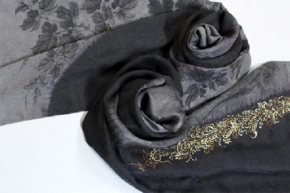 草木染め教室を始めるとき高齢の主婦層には針仕事の経験が豊富だったから、手縫い手絞り技法を選び、工夫を重ねて独自の染めを目指した。草木染は県内外の各地で普通に行われており、マスコミにも取り上げられるが、染めてすぐに結果を出せるものではない。色あせや摩擦などへの耐性と経年変化を見ないと染めの質は判断できない。20年の間に私の工房では植物の染色データを250種類ほど調べて、染色結果の良いものを見つけていた。能登の海岸沿いの丘にはヤシャブシの実が目に付く。タンニン分が多く含まれていて、絹にグレーを染める。その染め重ねた色布を石川県工業試験場へ持ち込み、耐光堅牢度などを調べてもらったところ良好な結果を得ていたのだった(^^工房の仕事としてヤシャブシの2色の絞り染めに、墨描きや金彩模様を描いた商品を発表することになった。ヤシャブシのグレーと黒の2色絞りの上に手描き模様教室の絞りが基本になって多色の絞りが確実になったヤシャブシで染めた絹ストールは5年前からデパートの催事で販売を始め、三越やディノスの通販カタログに掲載されて、今年もZekooに掲載販売されている。こちらライトアップショッピングクラブ能登で採れる植物を使って染めて、主婦が絞った絹ストールが全国で販売される品となった。その基になったのが草木染め教室の絞り技法だった(^^▼能登の手の日々 カテゴリー ●全て ●日々 ●街中ギャラリー ●染色 ●能登、そして、この町 ●絵・美術について ●CG ●食べもの ▼能登の手の作品集 (写真・CG) ▼リンク ●ようこそNotoNote オリジナルのデザイン・あつらえの着物。染色・草木染めの専門ページです。 ▼お気に入り ブログ・その他 ●Water-Colour ひろろdecさん ●紅の水絵日記 M-Crimsonさん ●MoMo太郎日記 MoMo太郎009さん ●Kleine Erfrischung kamoppieさん ●考え事ほか vissel-篤胤さん ●地元力向上委員会 hanami73さん ●今日の空 つるまる5さん ●Que sera sera 五右衛門0563さん ●染工房えむ koubou-mさん ●バンブーおじさん奮闘記 幸達さん ●てんてん日記 もえぎさん染色の専門サイト★能登の手へのメール