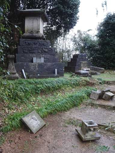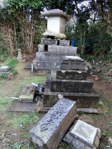 2基ともお墓の上部がズレて壊れた
