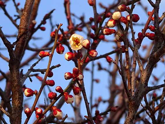 家の周囲に6本ある梅の木、蕾がつらなっている♪