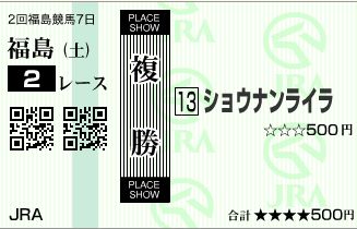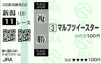 1着は1人気も2着にビケ人気が突っ込んできて、3着6人気のヨシトミさん当てました!!!あ、上の写真は馬券ではないです。PATでPCでフラッシュ投票で買うとこういう馬券みたいのが出るんでコピッた感じですwちなみに、払い戻し370円でした。500円×3,7で1850円なんでプラス1350円でございました!!!!・・・もういいや、今日は勝ち逃げで(ぉ