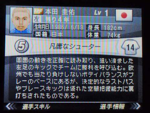 ついにねんがんのほんだけいすけをてにいれたぞ!!!! よっしゃあああああああ!!!でもこのソフト出たのがW杯前なんで、FWの位置が無色透明というね(一番上手いポジションが赤→黄色→薄い黄色→透明だったかな?)・・・まぁ、いいですw無理矢理使ってまえ(ええええしかしねえ、もうホント無理w毎回言ってますが早く選手の獲得数増やさないともう切る選手いない!!!毎回カップ戦でくじ引いてもそのまま捨ててます。マグレでEXやらレアが出たらどうしようかとドキドキしてます(汗 僕のブログのタイトルでもあるジョッキーの柴田善臣さんが2Rで落馬負傷。JRAのホムペくそだから、全然どうなってるのか発表してくれないし。今日は全部乗り変わったみたいです。大怪我なのか、それとも大事を取ったのかすら分からん!!!使え無すぎだJRA!(ぉというわけで、今日は馬券を買いませんでした。ぷらまいゼロっすw