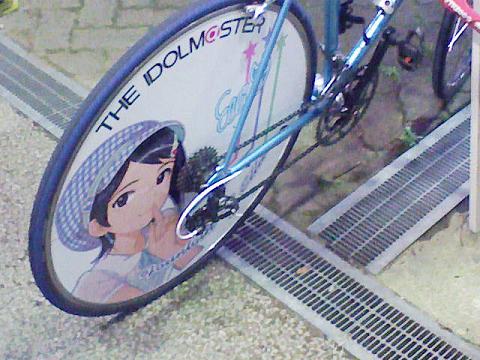 というわけでアイドルマスターのライブに行って来た乃和です。すでに土曜日の時点で動画上がってましたがアイマス2きましたね~。前作のDSは新しい3人を育成する感じだったんで初期キャラ、しかも成長した彼女達を育成できるのは初代ファンからしてみたら歓喜なんでしょうねえ。ただ、冷静に考えるとアイマスってかなりむずかしいゲームに分類されると思うんですよね。AVGのファンディスク的なノリで手を出すと痛い目を見ると言うか。ので、僕は一通り攻略wikiが上がってから買うか検討したいと思います。動画見ましたが「やっべー!これ買うしか無いよハアハア!」というところまではいかなかったんで。そこまでの愛は無いのかもしれませんwライブの方は・・・某キャラの声優が変わるみたいです。まぁ最近まともにライブにも出ない(この日も来てなかった)などかなりのいい加減ぶりを発揮してたんでクビになったんでしょうね(ぉ さようなら、うれしー(ぉ最近リリースされた曲から入ったので正直さっぱり分からなくて大変でしたが中盤から、初期の曲も掛かり出してテンション上がりました。やはり知ってる曲とそうでない曲では雲泥の差でした。下準備してから行けばいいのですがアイマスの曲数って膨大過ぎて正直全部覚えることなんかできません(汗 この辺りコアなファンしか楽しめない敷居の高さを感じちゃいました・・・。くぎみーってもっとサバサバしてるのかと思ったけど泣いたりして以外と初心なのね、惚れたぜ(ぉ 帰りに痛車ならぬ、痛自転車が止まってたんで記念に撮って来ました(ぉ 何故かアイマスに関係ないのも止まってました、ミクとか(ぉ アイマス、初ライブ参加にしては意外と楽しめた自分に驚きました。順応性、まずまず高いのかなあw